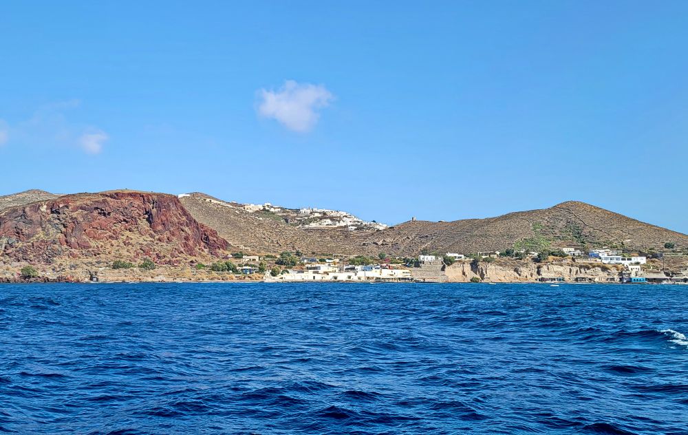 这段旅程从风景如画的维查达码头出发,带我们驶向圣托里尼火山岛最具标志性的景点。沿途,船只穿越宁静的海域,将圣托里尼火山群岛的风光尽收眼底。