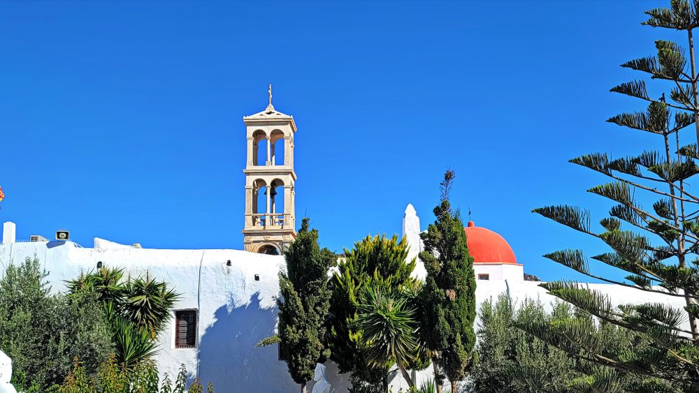 是米科诺斯岛上一座历史悠久且庄严的宗教建筑,位于阿诺梅拉村中心。建于16世纪,这座修道院以其典雅的建筑风格和文化重要性闻名。洁白的外墙与红色的穹顶和钟楼形成鲜明对比,散发出典型的基克拉泽斯风情。修道院内部装饰华丽,拥有雕刻精美的木制圣坛屏风、精致的圣像画和镶嵌大理石的泉坛,彰显出宗教艺术的辉煌。