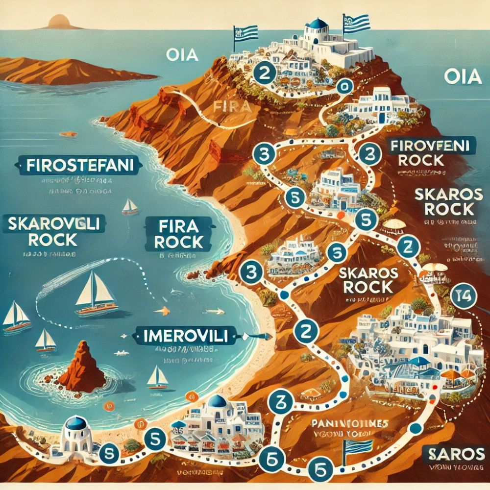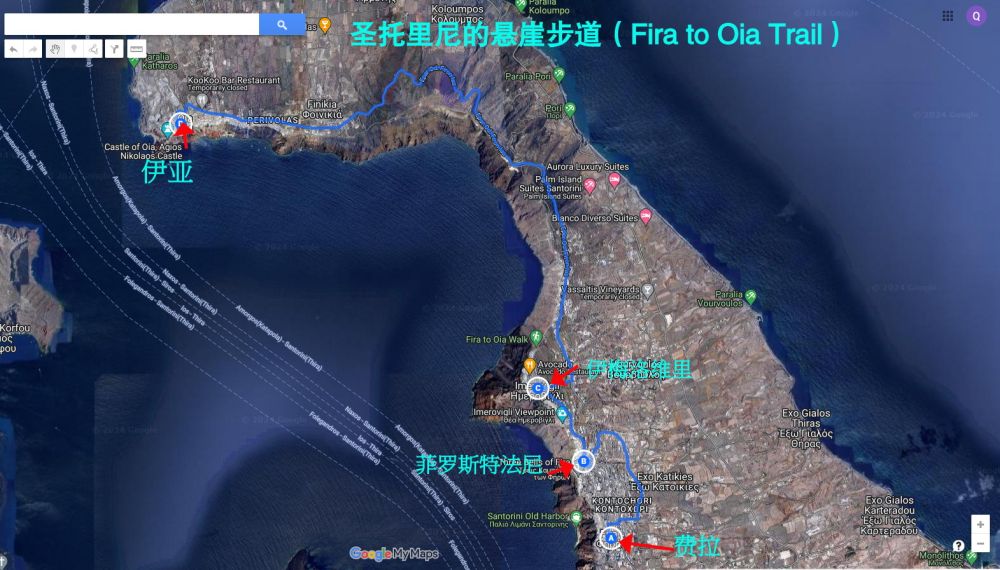 这是AI绘制的从费拉到伊亚的悬崖步道示意图