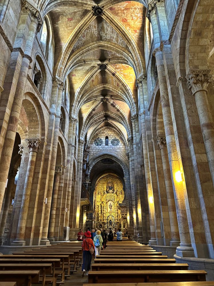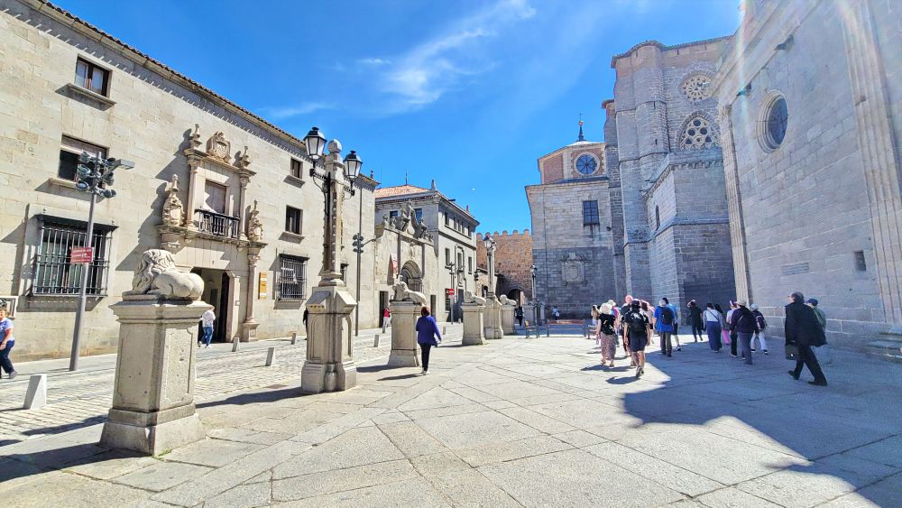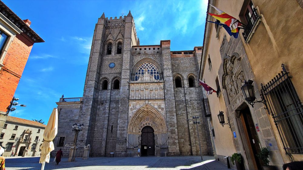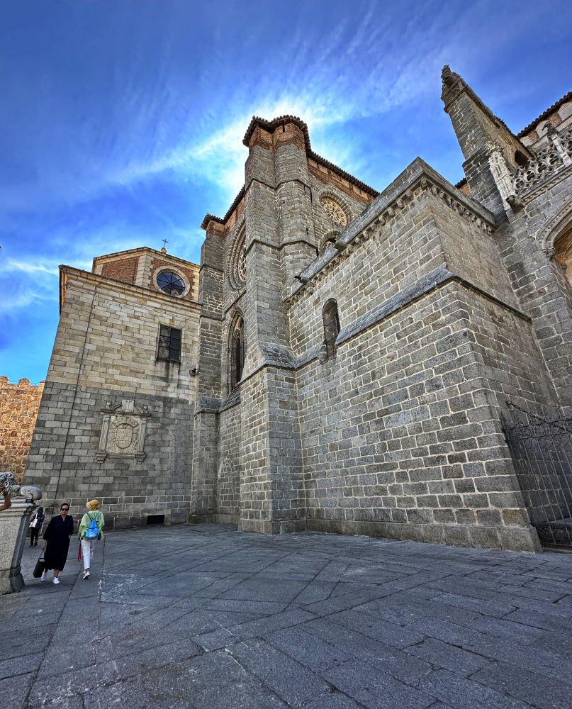 阿维拉大教堂始建于罗马时代,但最后以哥特式风格建造,从而使阿维拉成为卡斯蒂利亚最早发掘这种建筑风格的城市之一。教堂与城墙连成一气,登城墙看教堂更加雄伟,壮观。大教堂曾经是宗教与军事防卫两用的建筑,用花岗岩构造了一系列哥特式装饰,用砂岩打造出罗马风格的墙体,二者形成了鲜明的对比又和谐统一。