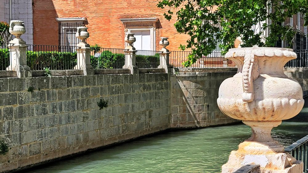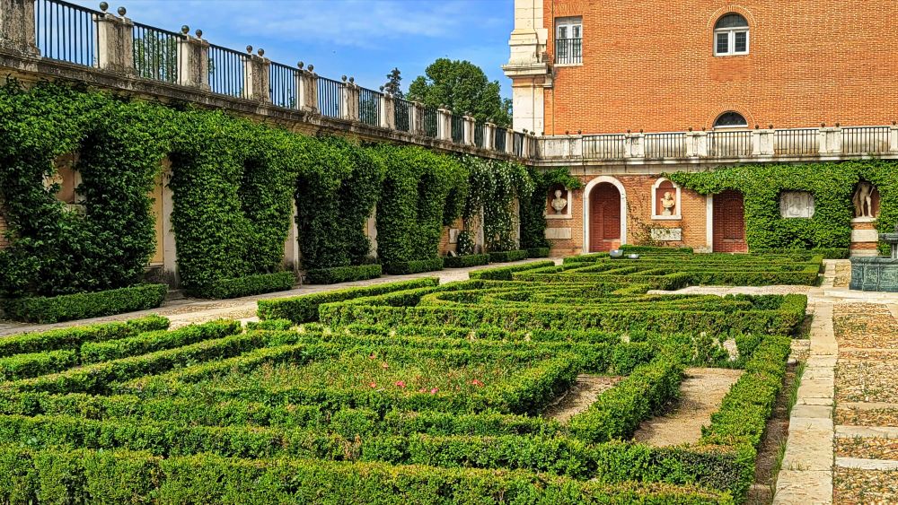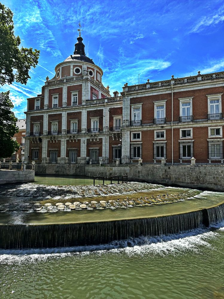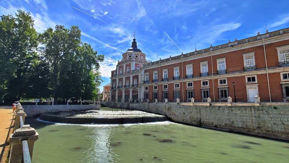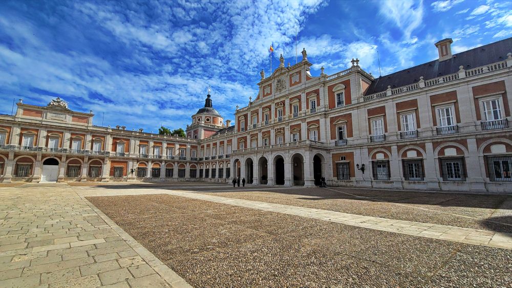 阿兰胡埃斯宫(Palacio Real de Aranjuez)是西班牙王室的春季行宫,建筑风格属于文艺复兴和巴洛克风格的结合体。宫殿的外观十分规整,建筑布局呈现出极强的对称性,展现出古典建筑的平衡与和谐感。主建筑的中心是一个高大的拱门,左右两侧对称分布。宫殿的外墙由三种主要色调构成——红色的砖墙、白色的石质柱子和窗框,以及灰色的屋顶。这些颜色的对比增强了建筑的立体感和视觉冲击力。宫殿的外墙和门廊上使用了大量大理石装饰,有时还配以精致的雕塑,表现出王权的庄严与宏伟。阿兰胡埃斯宫的周围有广阔的花园,尤其以“皇后花园”著名。园林设计融合了法国、意大利的景观风格,布局整齐,花坛、喷泉、雕像遍布其中,宫殿建筑与自然景观相得益彰。