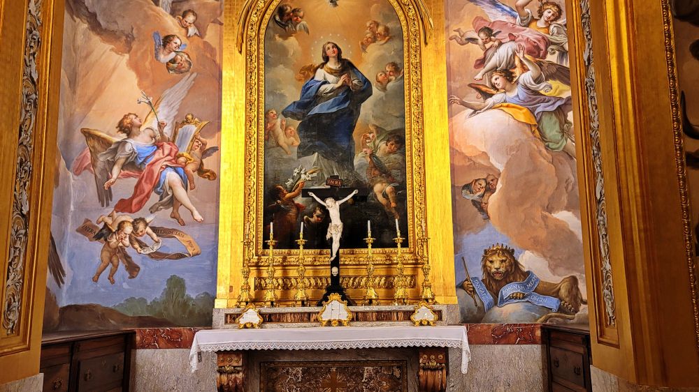查理四世礼拜堂,有时称为女王礼拜堂。壁画由戈雅的妹夫弗朗西斯科·巴约·伊·苏比亚斯 (Francisco Bayeu y Subías) 于 1791 年左右绘制。