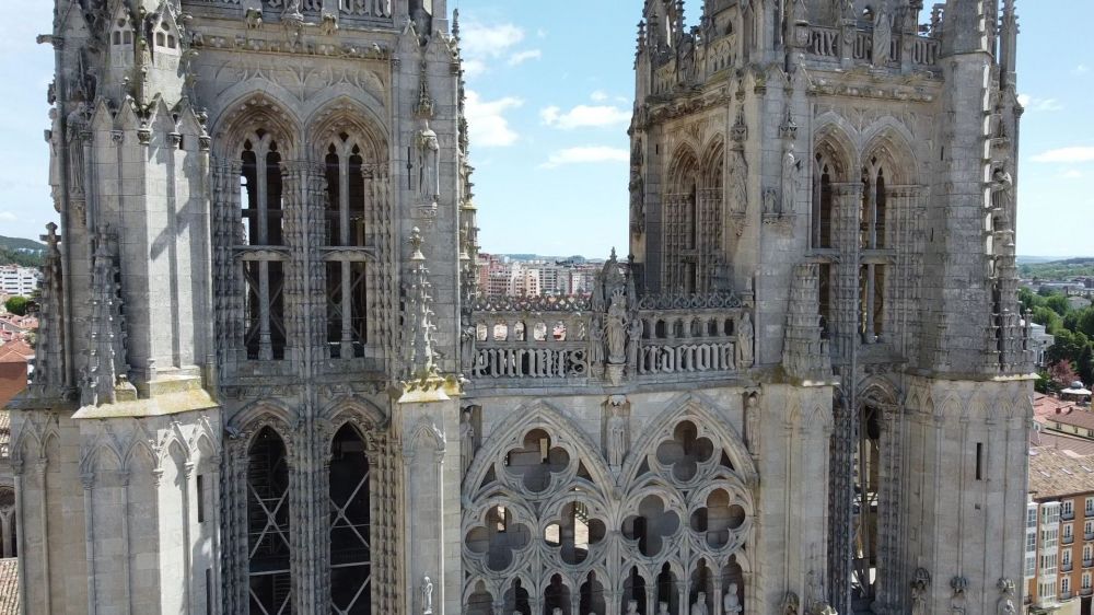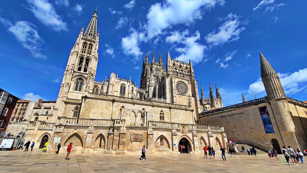 布尔戈斯圣玛丽大教堂始建于 1221 年,采用法国哥特式建筑风格,经过近 200 年后,它在 15 世纪和 16 世纪经历了辉煌的重新装饰:主立面的尖顶、礼拜堂、和耳堂的圆顶。这些都是华丽的哥特式元素,赋予了大教堂明显的轮廓。大教堂内保存了许多杰出艺术家的作品,于 1984 年被联合国教科文组织宣布为世界遗产。它是唯一拥有这一没有与城市的历史中心相连荣誉的西班牙大教堂。