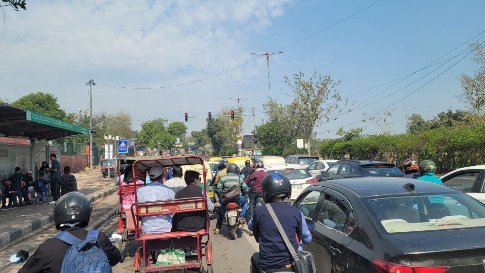 走在新德里的街头,交通的混乱是令人难忘的。车水马龙的街道上,汽车、摩托车、三轮车、公交车、人力车、甚至牛车和行人混杂在一起,形成了拥挤不堪的交通场面。