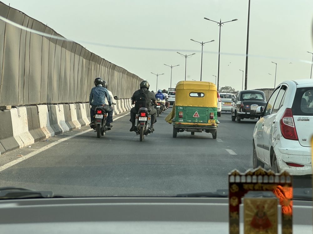 我们刚到新德里,接机的网约车司机印度小哥,就秀了一把他的逆行绝技。当快到我们下榻的旅馆时,他从主干道(或”高速“)错过了出口,于是,他当即出来后沿测面单行路逆行。当时正值交通高峰时段,路上满是各种车辆,他居然逆行挤出一个缝隙,更为神奇的是,路上数位行人居然充当“交警”指挥我们的逆行车,硬是左突右冲到了目的地。