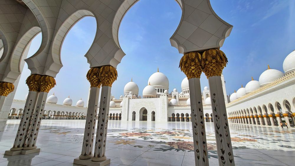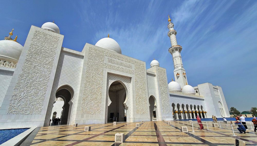 静谧与宁静的氛围:尽管清真寺规模宏大、装饰豪华,但步入其中时,宁静的氛围让人感到平和与安宁。无论是阳光下的白色墙壁还是大理石地板上的柔和色彩,清真寺似乎将世俗的喧嚣隔离在外,只留下内心的宁静。