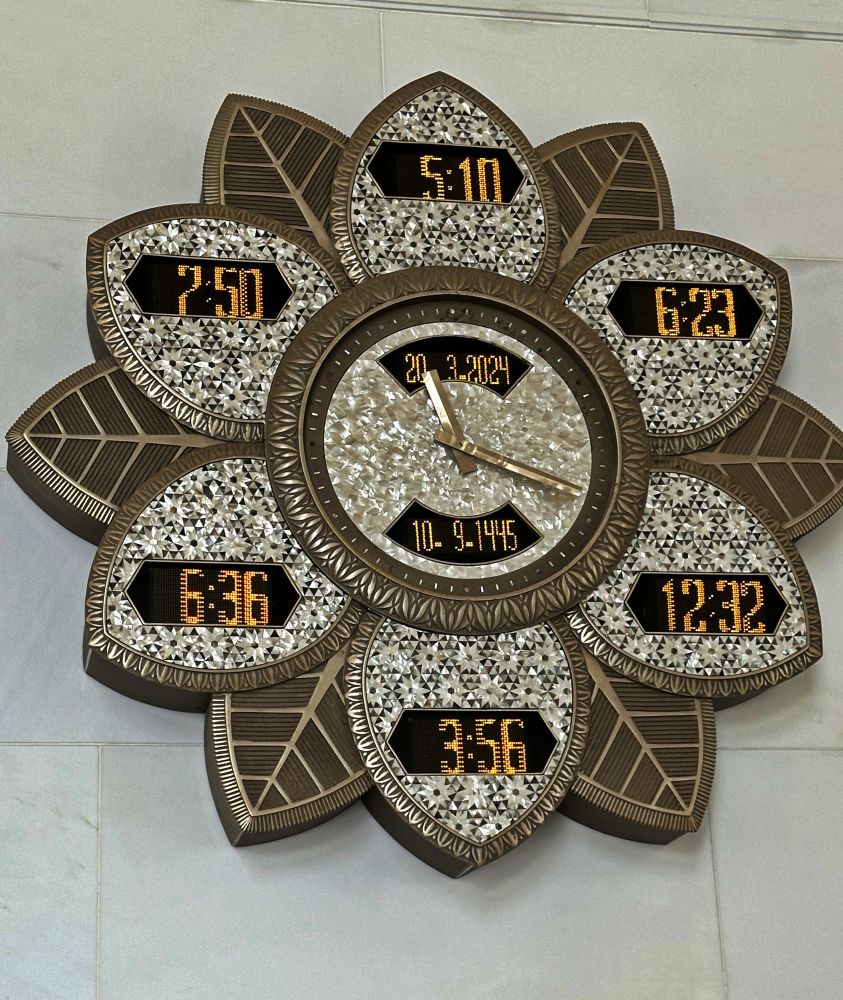 祷告钟表,这不是一个普通的计时表,它显示的是不同祷告时间,晨礼,晌礼,晡礼,昏礼,宵礼。