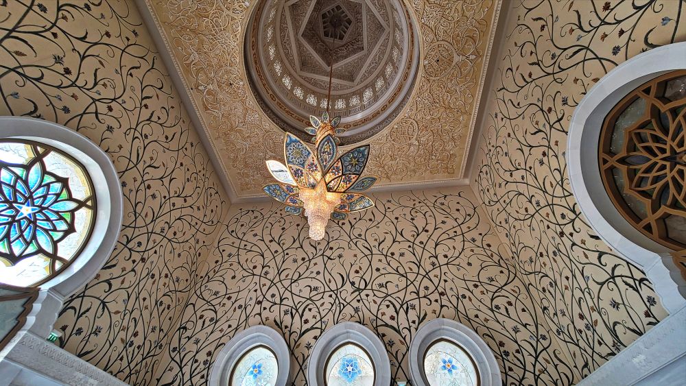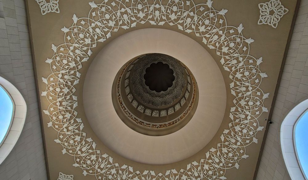 令人屏息的圆顶:谢赫扎耶德清真寺的圆顶设计是世界上最大、最精致的之一,共有82座圆顶,主圆顶高85米,直径32.8米。站在清真寺内部仰望这些圆顶时,感受到的震撼感尤为强烈,它们象征着天堂的纯净和无限。