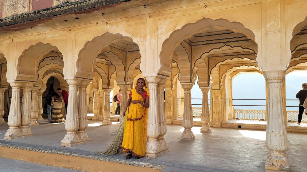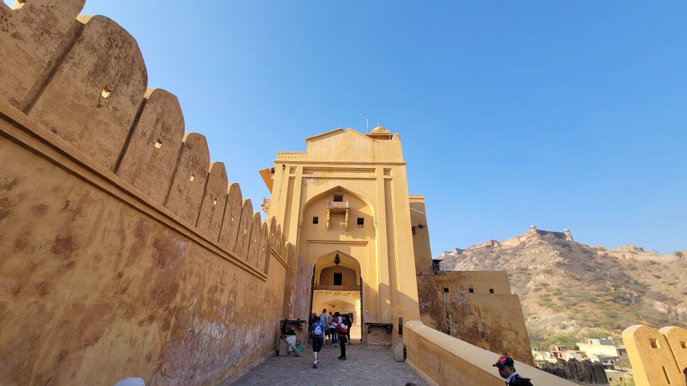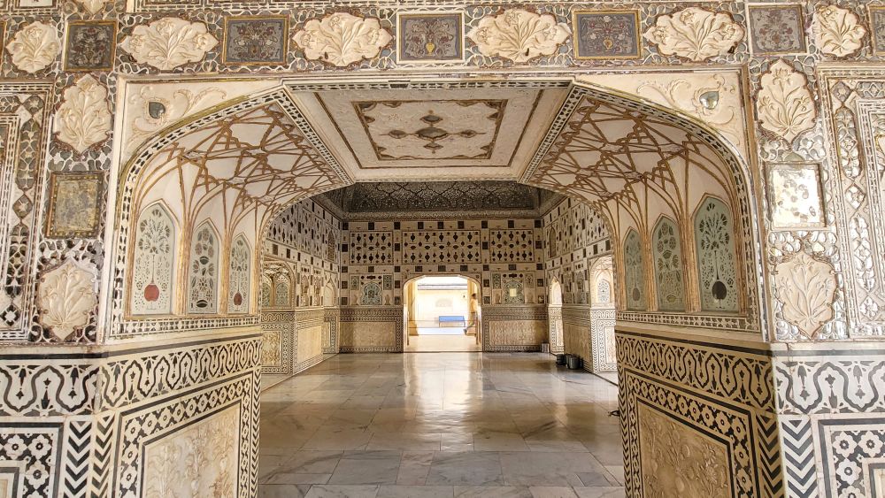 阿米尔堡(也称为琥珀堡)是一座独一无二的宫殿。琥珀堡位于拉贾斯坦邦斋浦尔附近,是印度最著名、游客最多的城堡之一。1592 年,率领莫卧儿皇帝阿克巴军队的马哈拉贾·曼·辛格一世在一座 11 世纪堡垒的遗址上开始修建这座堡垒。而后,历代统治者在 1727 年迁都斋浦尔之前,又对琥珀堡进行了扩建。2013 年,它被联合国教科文组织列为世界遗产,是拉贾斯坦邦六座山堡之一。其建筑融合了拉其普特(印度教)和莫卧儿(伊斯兰)风格,令人瞩目。琥珀堡由四个庭院、宫殿、大厅和花园组成。入口处是主庭院(Jaleb Chowk)。国王的士兵在这里集合并列队,太阳门(Suraj Pol)和 月亮门 (Chand Pol)通向这个庭院。进入堡垒后,从主庭院沿着楼梯向上,到达第二个庭院,公众觐见厅 (Diwan-e-Aam)就在这个庭院。第三个庭院是国王的私人住所,包括堡垒最精美的部分私人觐见厅(Diwan-e-Khas),它的墙壁上覆盖着复杂的镜面工艺,因此,它也被称为镜厅( Sheesh Mahal)。堡垒后方是第四庭院和曼辛格宫,既女眷们的后宫。