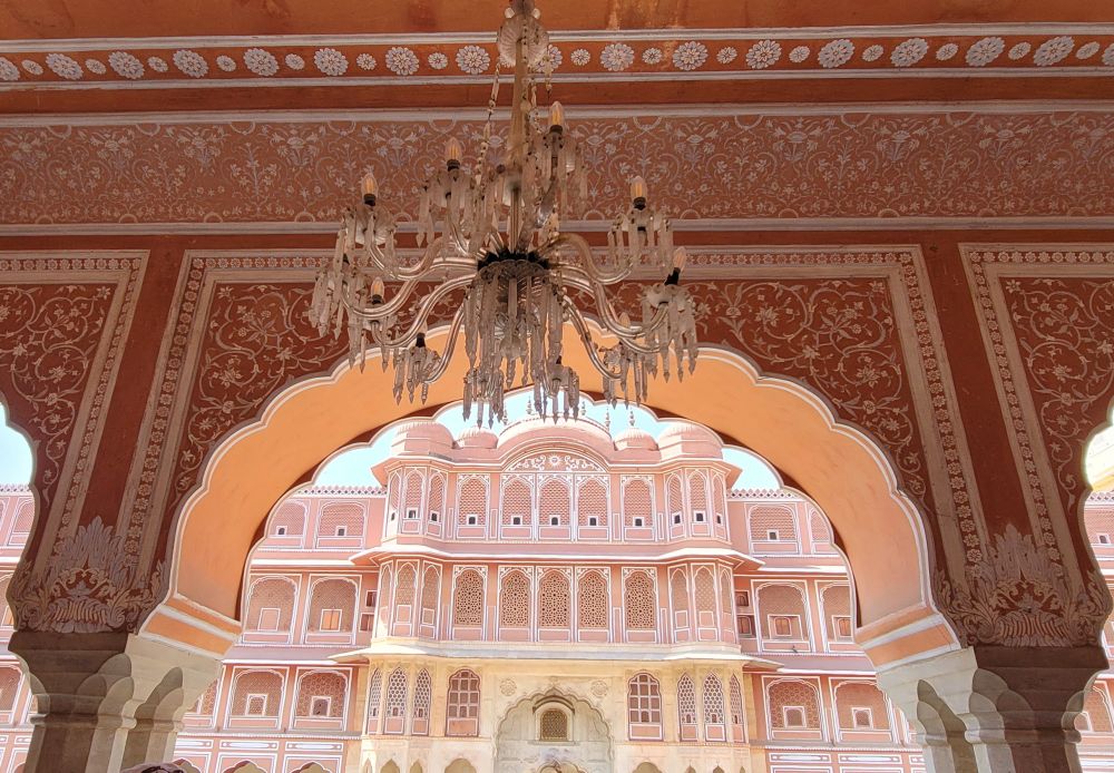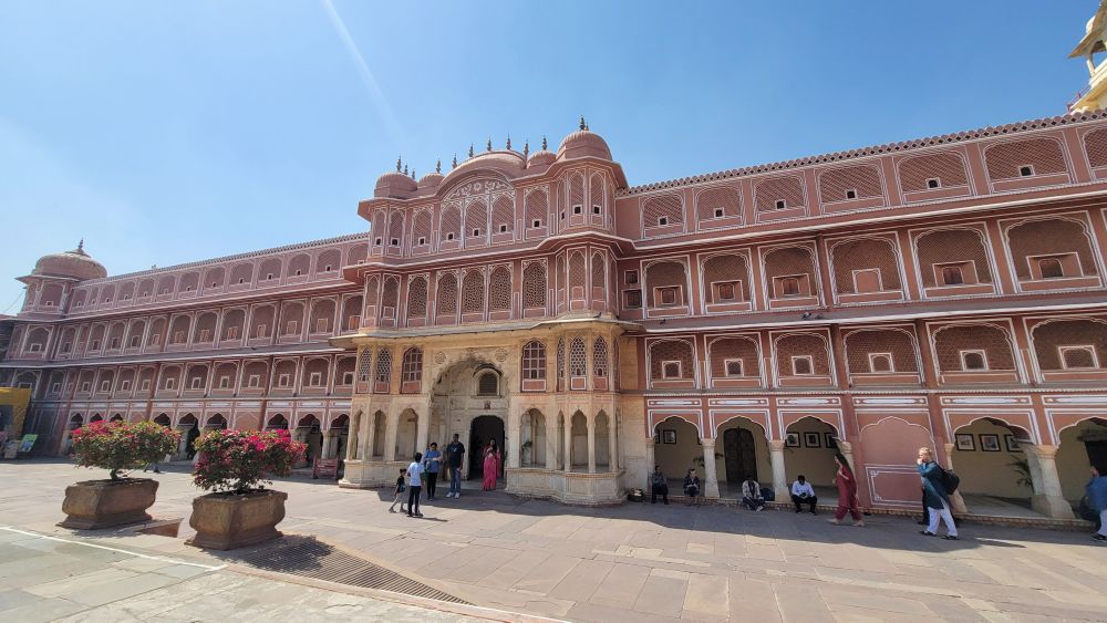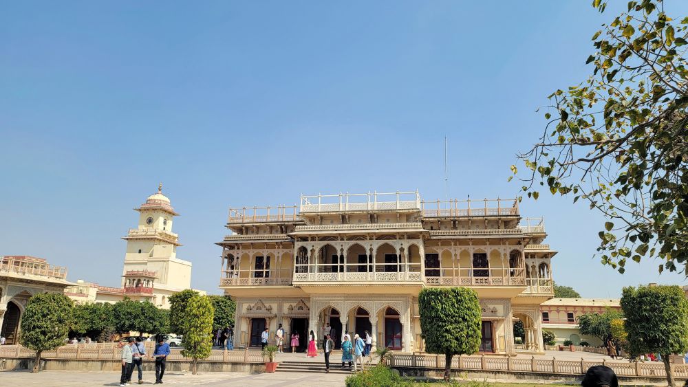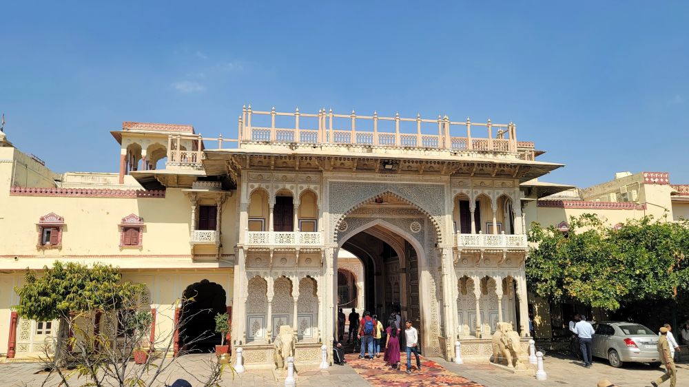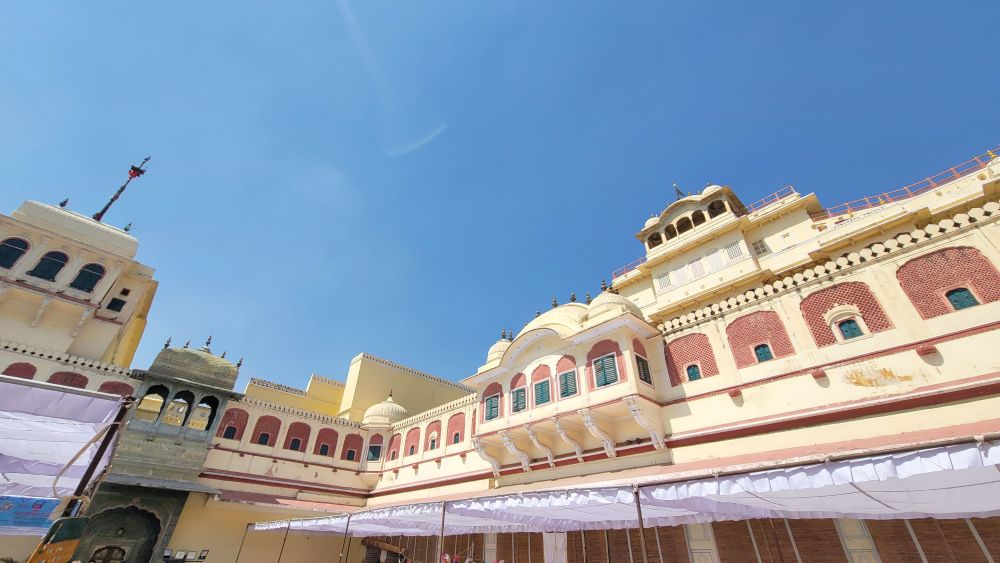 城市宫殿由斋浦尔的创始人萨瓦伊·贾伊·辛格二世 (Maharaja Sawai Jai Singh II) 构思和建造。宫殿完美地融合了莫卧儿和拉其普特建筑风格,至今仍是最后一位在位的王室的住所,他们居住在宫殿的私人区域。城市宫殿建筑群包括穆巴拉克宫 (Mubarak Mahal)(接待宫)和玛哈拉尼宫(王后的宫殿)。