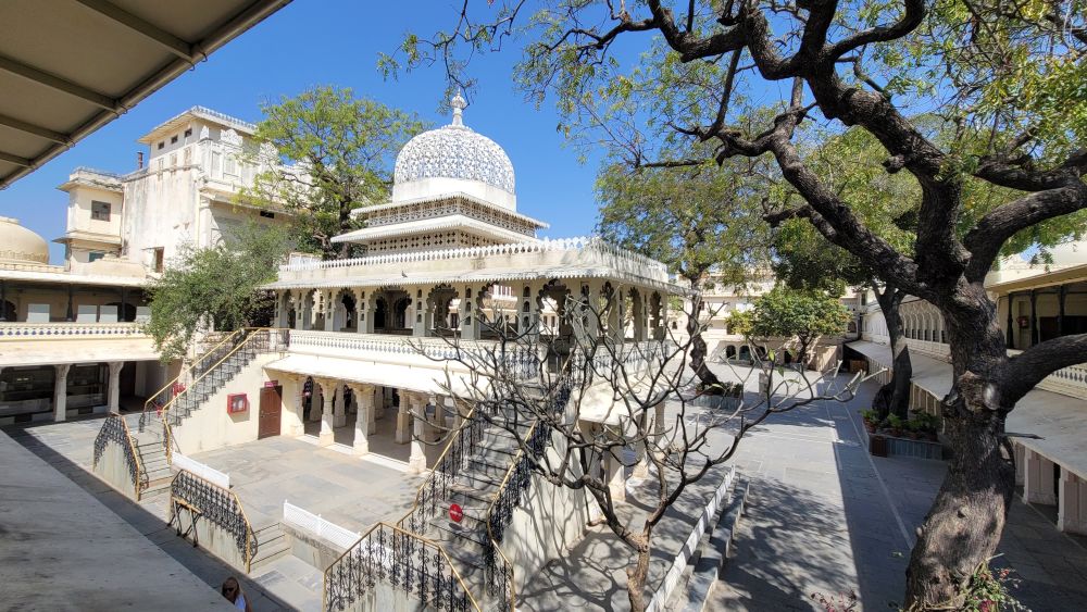 乌代布尔城市宫殿建在皮丘拉湖畔,被认为是拉贾斯坦邦最大的皇家建筑群。这座宏伟的宫殿由大公乌代·辛格 (Maharana Uday Singh) 于 1559 年建造,是大公们居住和管理王国的主要权力所在地。建筑群内有各种各样的宫殿、庭院、亭台楼阁、走廊、露台、房间和空中花园。这里还有一座博物馆,展示拉杰普特艺术和文化的一些最精美的元素 – 从色彩缤纷的绘画到拉贾斯坦宫殿的典型建筑。城市宫殿坐落在阿拉瓦利斯山的怀抱中,其花岗岩和大理石建筑与其古雅的自然环境形成鲜明对比。这座富丽堂皇的宫殿错综复杂的建筑巧妙地融合了中世纪、欧洲和中国的影响,并点缀着众多的圆顶、拱门和塔楼。