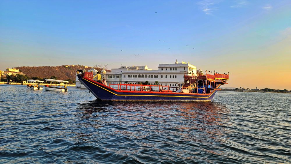 乌代布尔的皮丘拉湖是一个人工湖,由“班加拉”(游牧民族)酋长于公元 1362 年建造。公元 1559 年,梅瓦尔·马哈纳·乌代·辛格 (Mewar Maharna Udai Singh) 的统治者进一步扩建了堤坝。 皮丘拉湖周围遍布酒店、宫殿和大型宅邸,其中最引人注目的是前王室住所城市宫殿 – 他们仍然居住在那里。湖中央是湖宫,它是泰姬陵酒店集团经营的豪华酒店,已有 60 多年的历史。湖上的另一个地标是贾格曼迪尔宫 (Jag Mandir Palace),它曾经是一座皇家寺庙,现在是举办婚礼和其他活动的场所。我们参加了皮丘拉湖日落游船之旅,皮丘拉湖似一颗迷人的宝石,其宁静的湖水和风景如画的环境非常吸引人。这座湖被杰格曼迪尔和城市宫殿的壮丽宫殿点缀着,散发着宁静和历史魅力。乘船穿过平静的水面,可以一睹乌代布尔丰富的遗产和辉煌建筑。随着太阳落山,湖面变成了一幅色彩鲜艳的画布,营造出迷人的氛围。