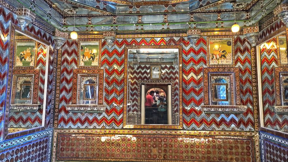 这是 卡兰·辛格二世(Maharana Karan Singh) 的住所。他建造了这间富丽堂皇的房间作为他的日常住所,从这里的窗户可以欣赏到乌代布尔的壮丽景色。房间装饰有漂亮的镜子和玻璃制品。除了玻璃制品外,房间的墙壁和天花板还装饰有各种绘画,宫殿房间的门是用纯象牙雕刻而成的。