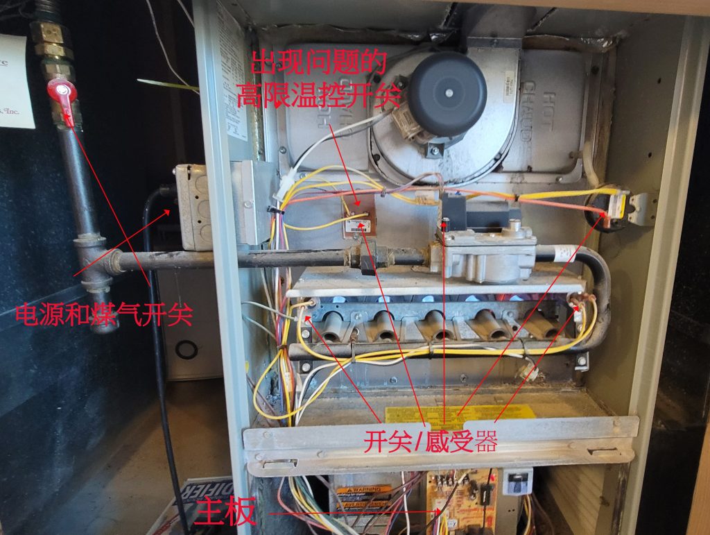 ”祸“不单行,前面刚给大家介绍了如何诊断及排除暖气炉(Gas Furnace)不热的故障(https://wuyegallery.com/wuyeblog/index.php/2025/01/17/diy-home-furnace/),家里楼下的另一台暖气炉也出了同样的问题,不过这次高限温控开关没有完全损坏,问题时好时坏,照前述处理,换一新开关一劳永逸地解决了问题。