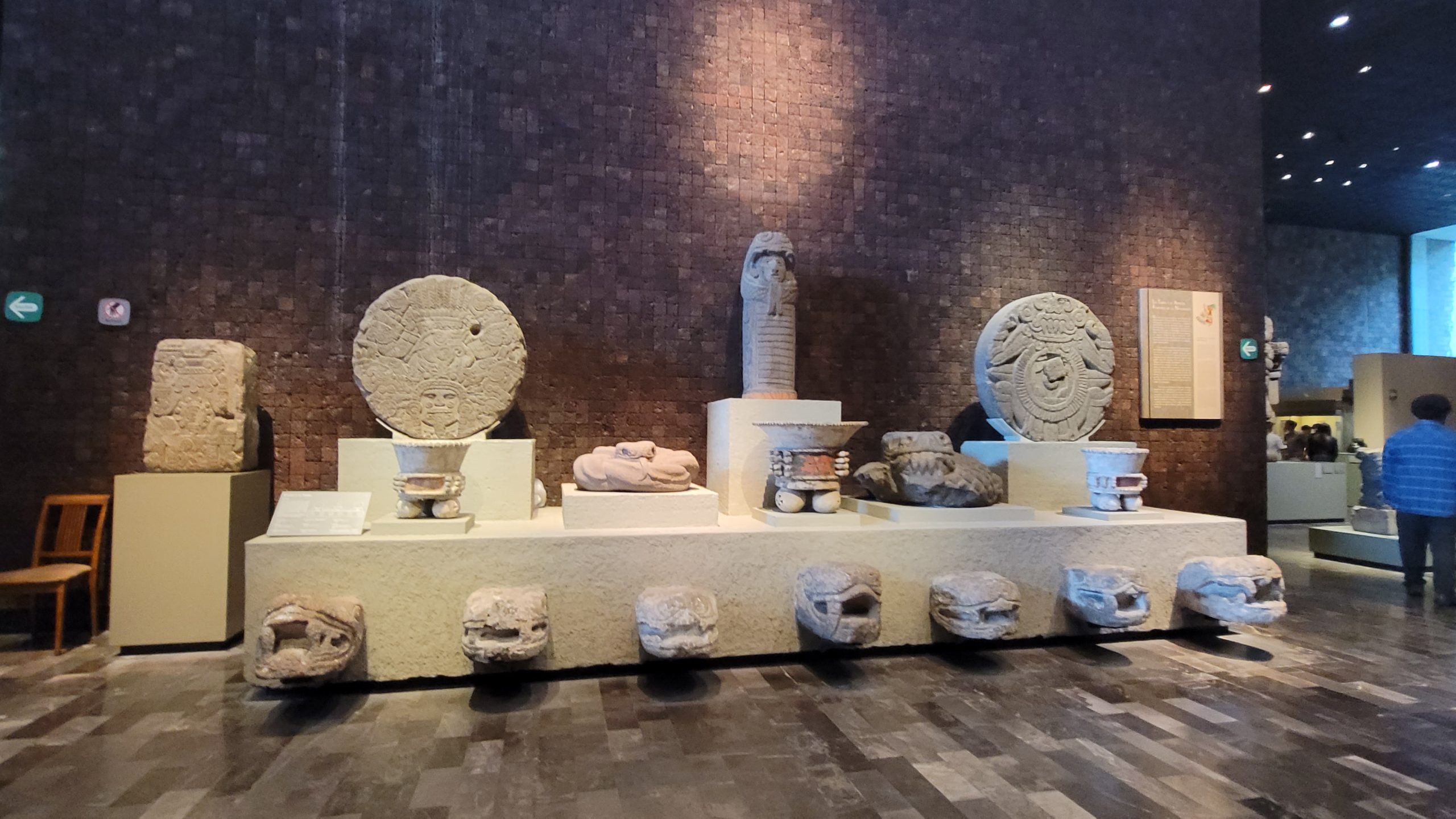 阿兹特克厅是博物馆的核心展厅,集中展示了阿兹特克文明的辉煌成就。展品包括镇馆之宝“太阳石”,这是古代历法的象征,体现了阿兹特克人的天文学智慧。其他重要文物还有巨型的科亚尔沙乌基神像、宗教仪式用品和装饰品,展示了阿兹特克复杂的宗教与祭祀文化。展厅重建了特诺奇提特兰的城邦风貌,让人仿佛置身于古代的阿兹特克帝国。