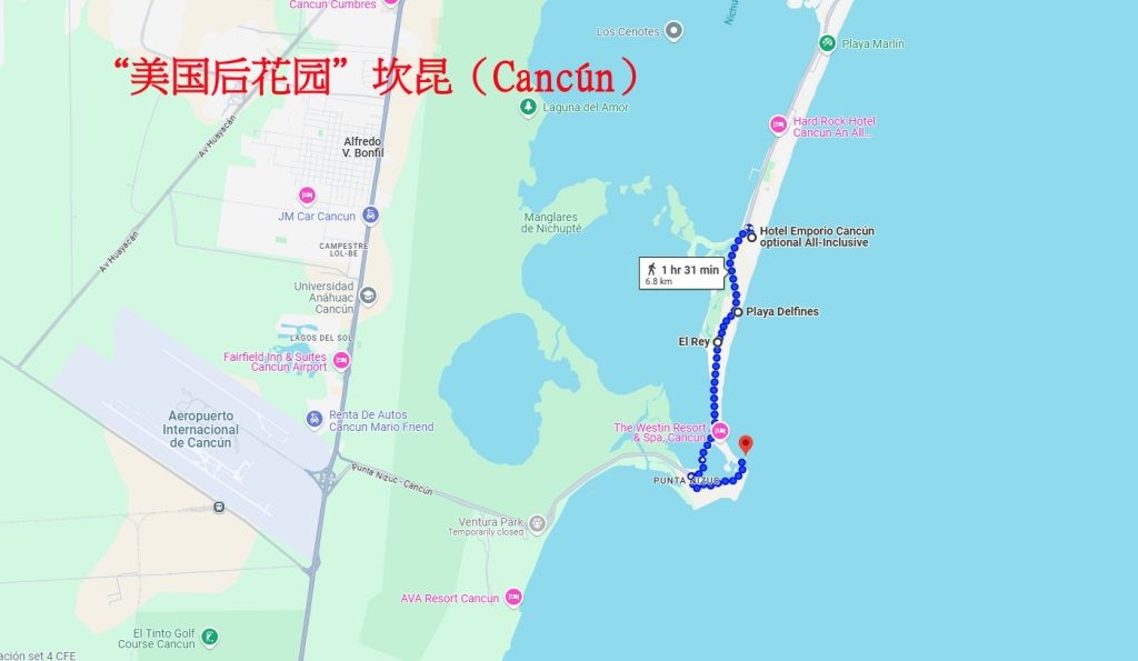 坎昆(Cancún)是墨西哥尤卡坦半岛东北部加勒比海沿岸的一座著名度假城市,被称为“美国后花园”,是北美游客特别是美国游客的热门旅行目的地。这一称号不仅反映了坎昆的地理位置,也体现了它作为国际旅游胜地的吸引力和重要性。