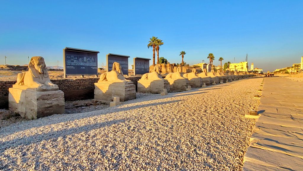 卢克索的狮身人面像大道,这条被称为“众神之路”的古老圣道,连接卢克索神庙与卡纳克神庙,全长约2.7公里。它始建于公元前1400年,数百年来大道深埋地下,直到2021年才被完整修复并重新向世人开放。