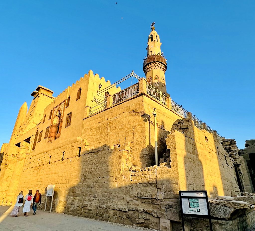 阿布哈贾格清真寺坐落在卢克索神庙建筑群之内,是当地穆斯林的礼拜场所。它始建于13世纪,用以纪念苏菲派学者优素福·阿布·哈加格。清真寺建在古埃及神庙庭院遗址之上,而该庭院在更早时期又曾被改为基督教教堂,体现了这片圣地在不同时代的宗教延续与叠加。