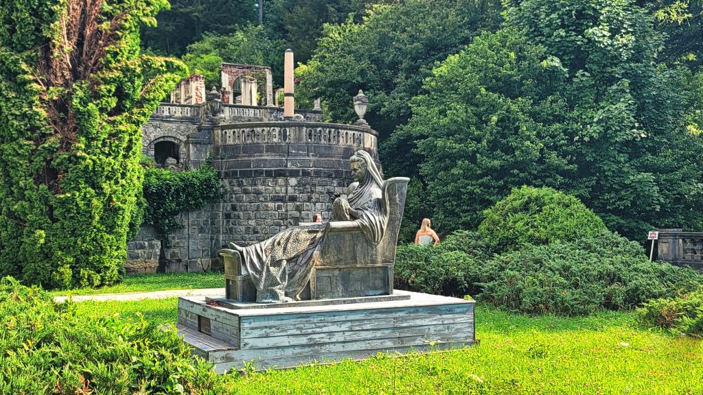 花园中伊丽莎白·维德王后的青铜雕像。她是国王卡罗尔一世的妻子。雕像中,女王端坐沉思,神情宁静而专注,既展现出王后的高贵气质,也寓意她作为诗人、作家与文化守护者的精神世界。